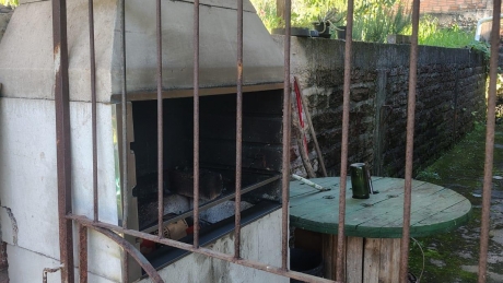 3 dormitórios sendo 1 suíte, 2 banheiros sociais, 1 banheiro de serviço, 1 ambiente living, 1 vaga de garagem, adega, área de serviço, churrasqueira, cozinha, grades nas janelas, jardim, quintal, lavanderia, pátio, sala de estar, teto em laje, frente.